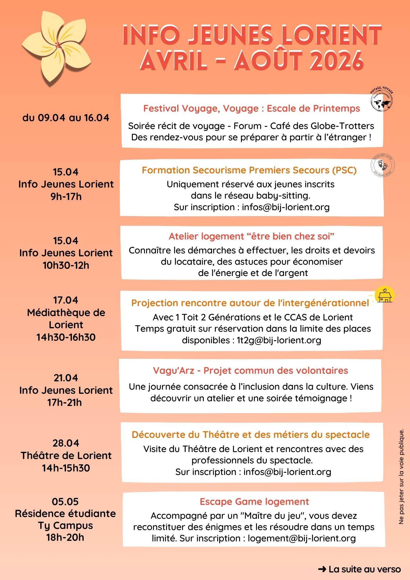 🎉 Le programme d’actions d’Info Jeunes Lorient d’Avril à Août est disponible ! 🎉