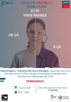 Fabrik Emploi et l’Industrie Recrute en Bretagne s’associent pour vous faire découvrir les offres d’emploi et formations existantes.