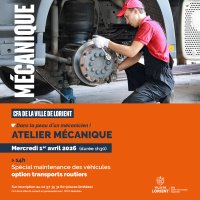 atelier pratique pour découvrir la mécanique sur des véhicules de transports routiers, les diplômes CAP ou BAC PRO et les métiers , sur inscription au 02 97 35 31 80 ou par mail cfa@lorient.bzh