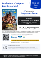 Séance inclusive, ouverte à tous, prix unique à 5 €, accompagnement par 10 bénévoles formés aux handicaps, sous-titres, niveau sonore réduit, audiodescription. Pas besoin de réserver (grande salle). Pour les structures médico-sociales, possibilité de se garer sur le parking privé du Cinéville (contacter le Ciné Relax)