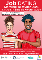 Comme chaque année la commune de Guidel organise un Grand Job Dating destiné à tous les publics et pour tout types de contrats. Alors que tu recherches un job d’été, une alternance ou un contrat, viens avec ton CV rencontrer les entreprises qui recrutent.