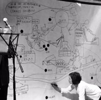 Longtemps, j’ai pratiqué sans atelier. J’aimerais évoquer mes façons d’aller dans le monde pour collecter des histoires, pour les traduire (par la cartographie sensible, par la performance dessinée, par les mots écrits ou parlés) et pour les redonner à entendre et à voir.