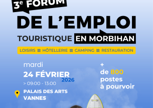 3ᵉ Forum de l’Emploi Touristique en Morbihan - VannesMardi 24 février 2026 de 09h00 à 13h00 | Travailler