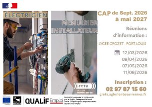 ELECTRICIEN ou MENUISIER ISNTALLATEUR - Formations de moins d’1an - H/FJeudi 9 avril de 09h00 à 12h00 | Se former -