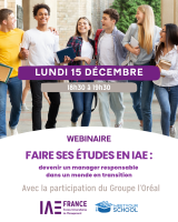 Webinaire Faire ses études en IAE : devenir un manager responsable dans un monde en transition